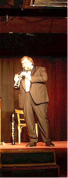 Musiker mit einer besondern Art des Klarinettenspiels.